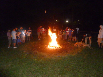 係りの山田も夕方ようやく到着して、今年は第三営火場で行った。