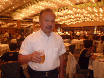三重塔はここのシンボルだね、とりあえずはここで1枚でしょ。一回りしてから五階の会場へ行くとたくさんの人が待っている。一応テーブル番号もあるので席の心配はないのだがそれにしても大変な客である。