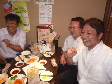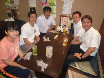 8月1日の稽古後に、蒲田のいつもの居酒屋で暑気払いと山田の祝勝会を行った。