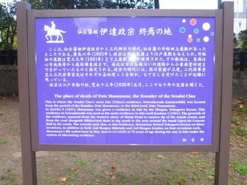 そしたら、江戸時代の伊達正宗公の終焉の地という案内板があってさすがの私もびっくり、てっきり仙台で息を引き取っていたばかりだと思っていたが江戸上屋敷で終焉を迎え時の将軍がお見舞いに来たという。