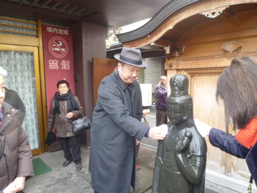 私は先々月に高校の同窓会の会長たちときているので二回目だが、今回は地蔵詣りに並んで水をかけて拭くというお参りをした。