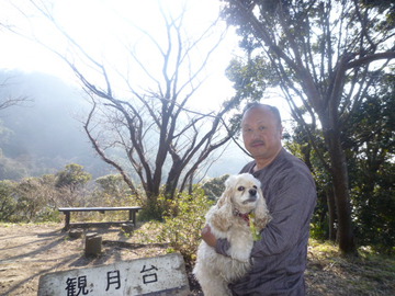 今回は観月台があるというところを上ろうと向かったが、行く前の階段の急なことおまけにちょっと前の雨の影響が残っており、クウなんかは杉の葉っぱや泥水で大変な状態になりあとで大変なことになるのだが、今は、ただ上ることに専念しているのである。