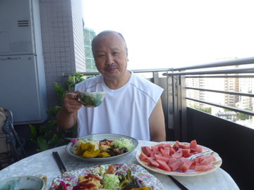 8月4日(火)、ベランダで朝食をしようということで久々にベランダでのんびりした。